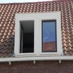 Dakkapel. Merk: "Kömmerling". 5 Kamer profiel: EuroFutur "Classic". Met geintregeerde met rolluiken (hand bediening). Kleur: Buiten antraciet grijs, binnen wit. Glas HR++ 4/16Argon/4 U-waarde 1.1